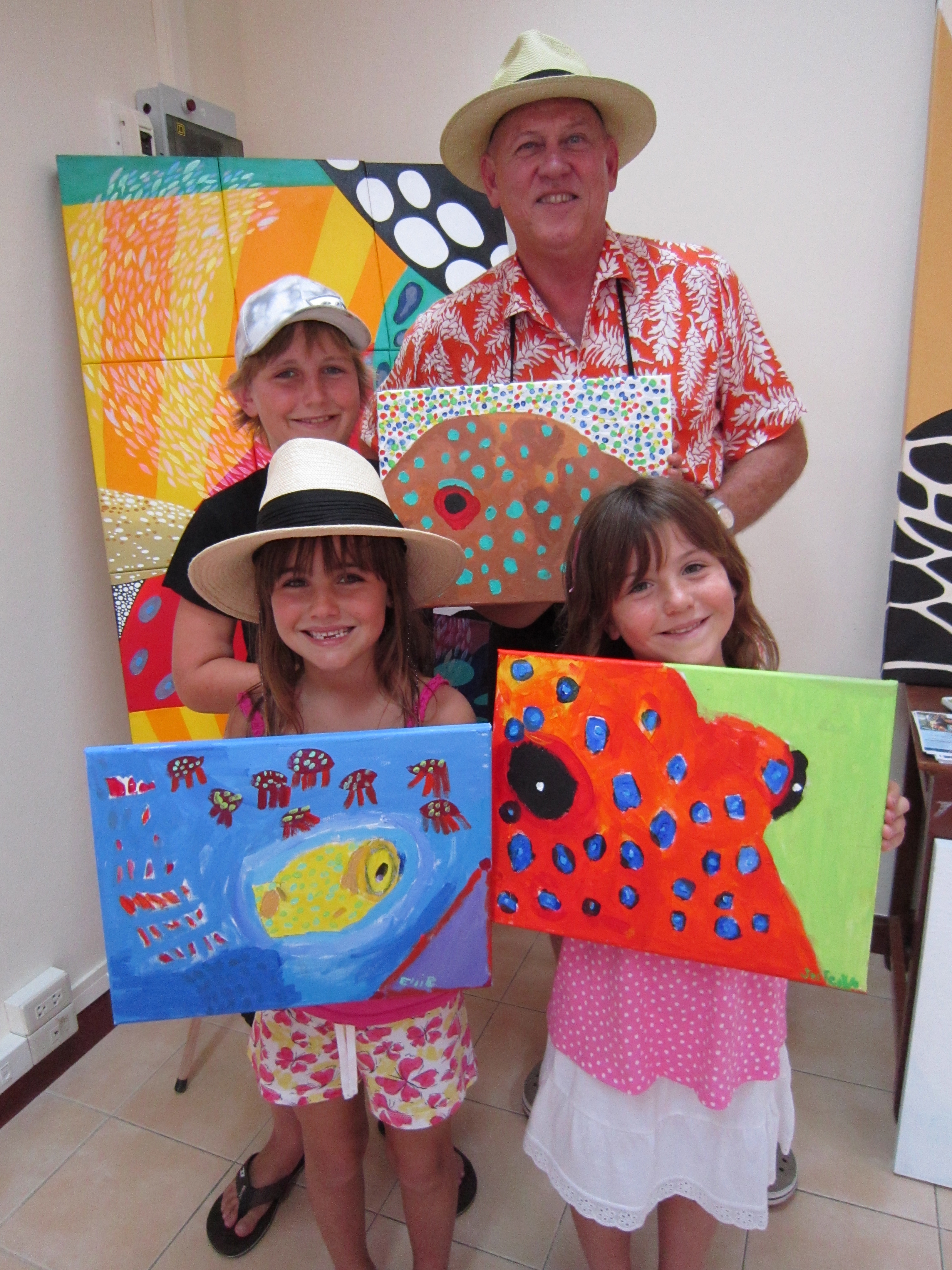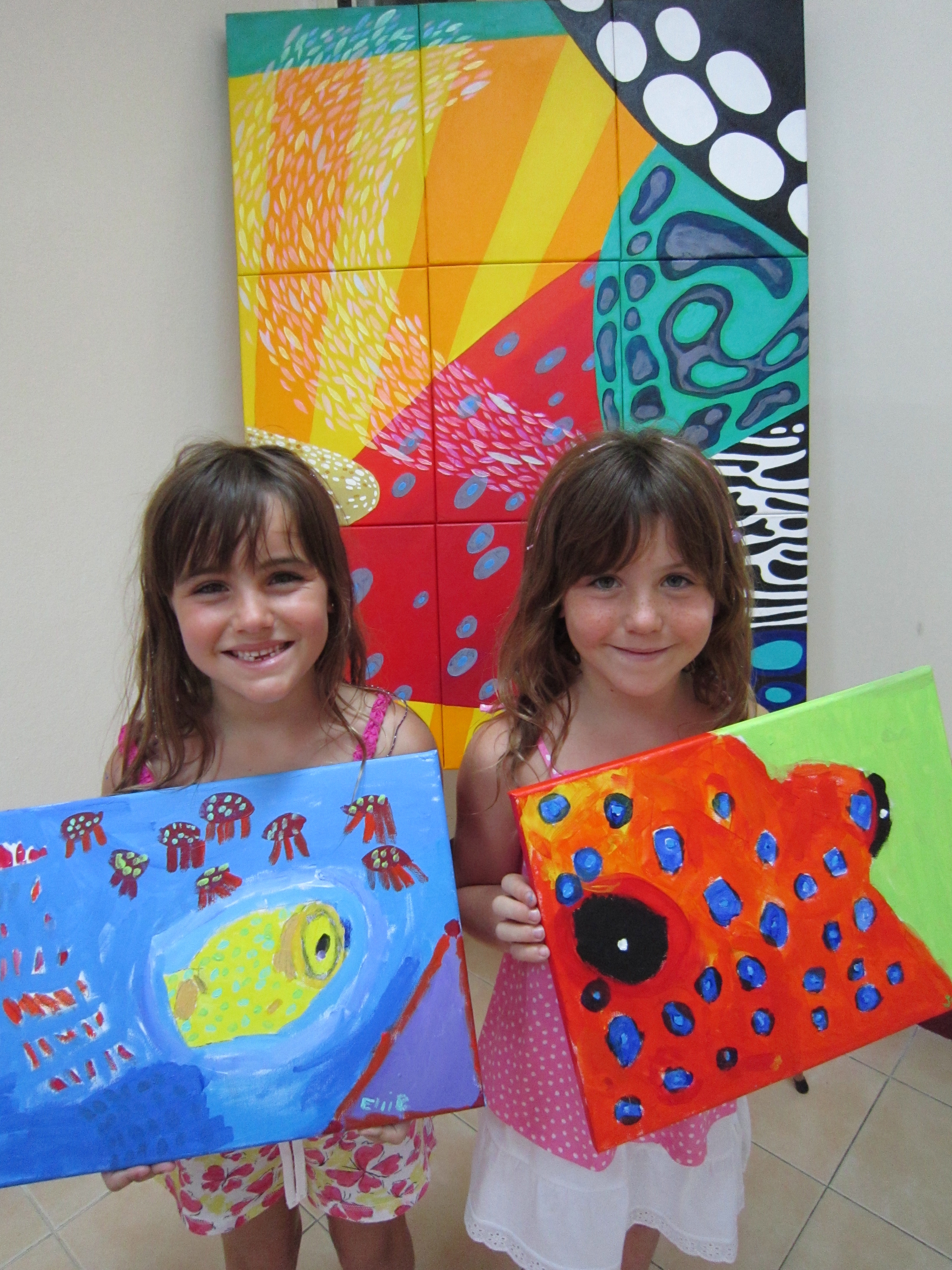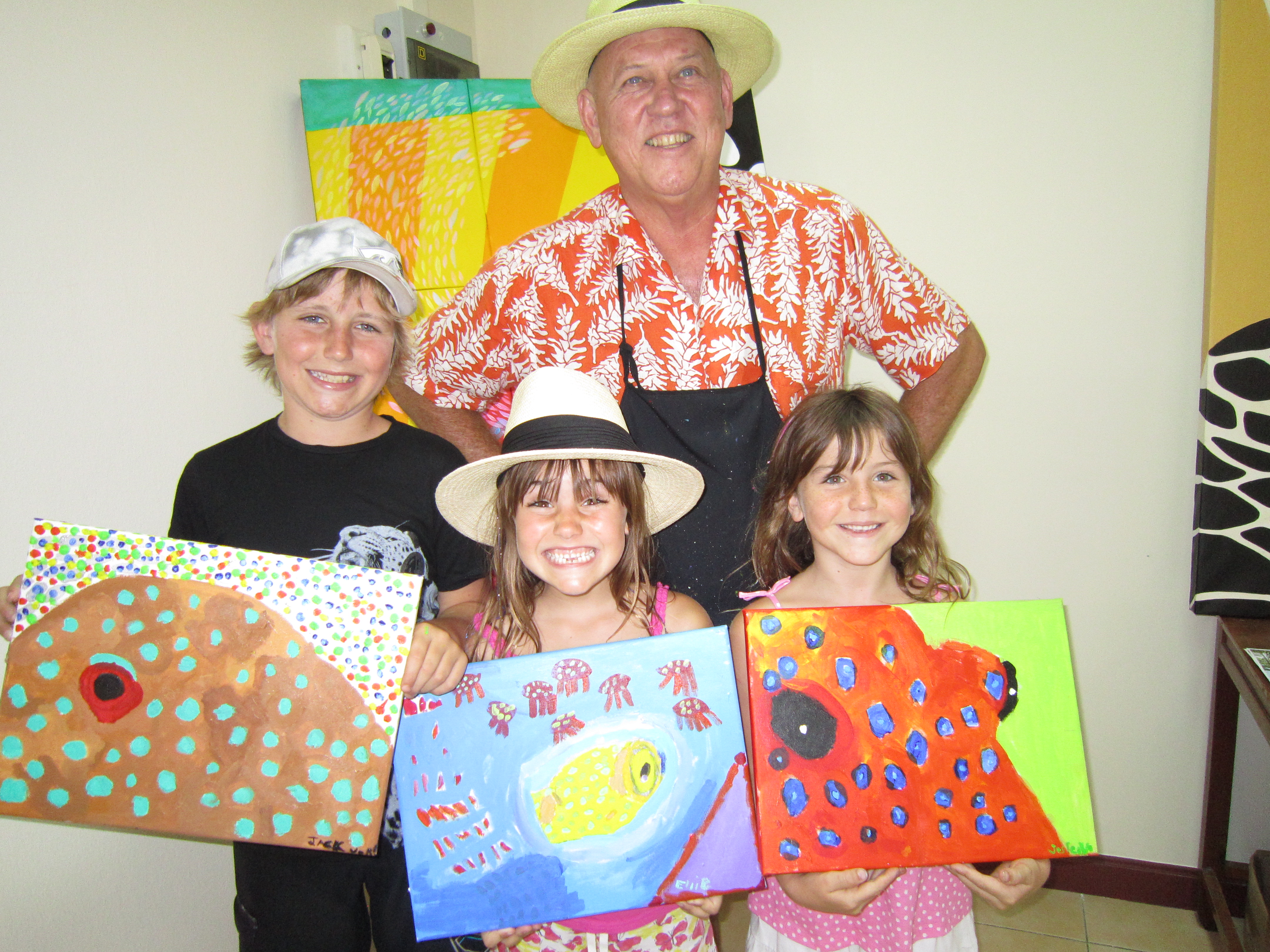 Three kids from the same family took my art class yesterday afternoon at Canal Village and what a delight they were to teach. Jack and his twin sisters (6 years old) did some very good work.
