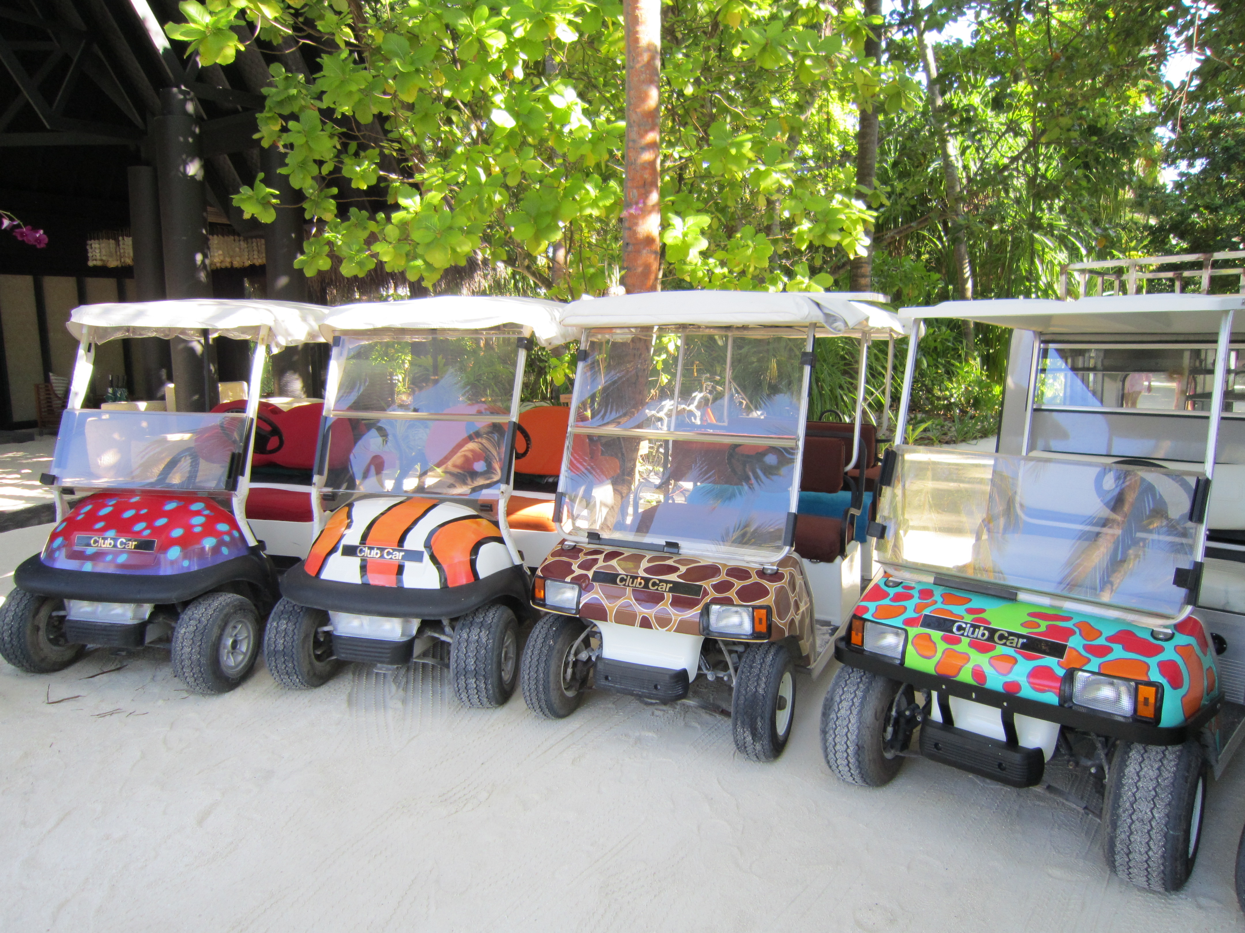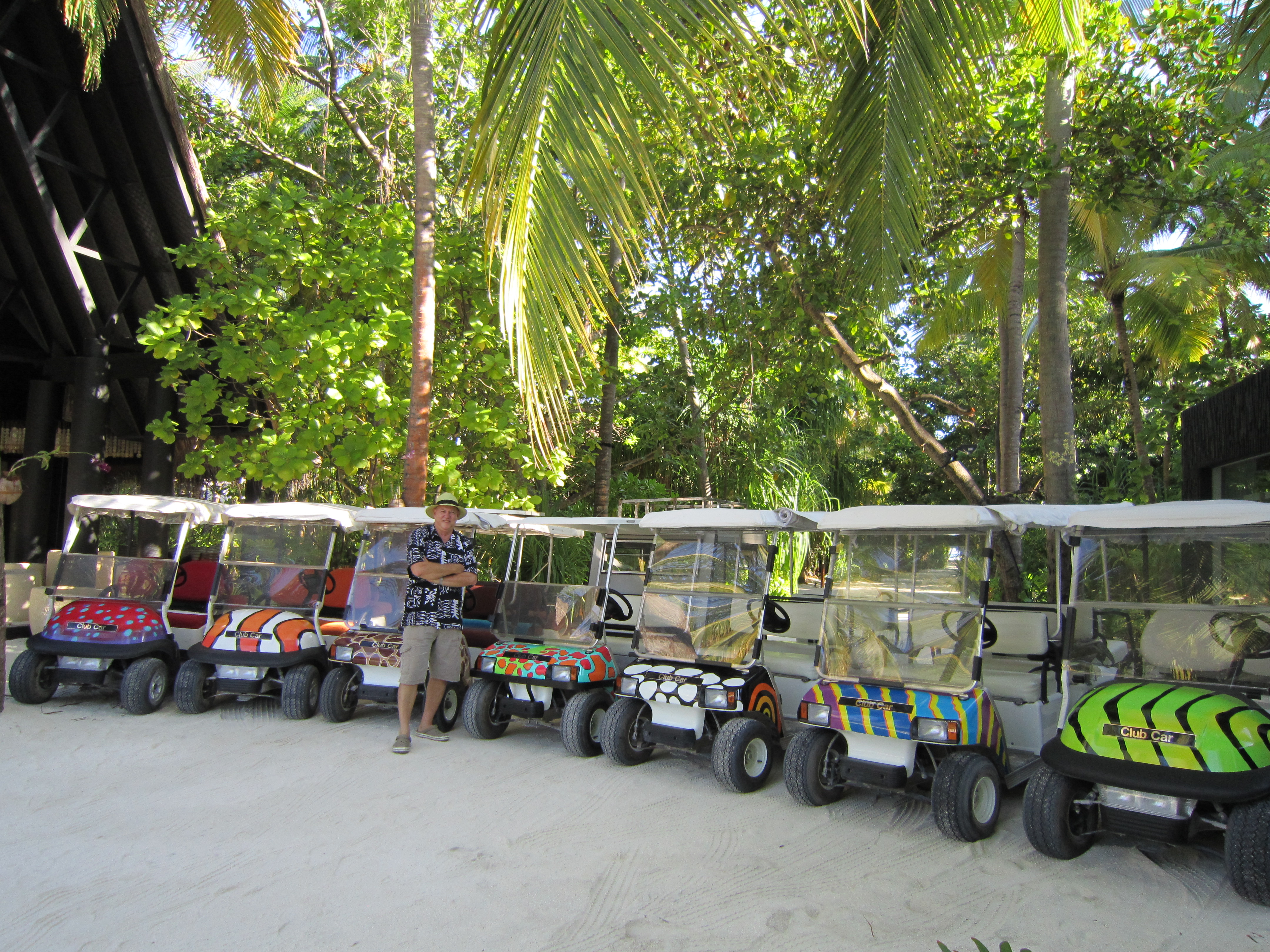 Recently returned to Anantara Kihavah Villas in sunny Maldives to design and paint the rest of the buggy fleet, my “Fleet of Hogan Fishes” which are all designed from images of large scale artworks from my HOGAN REEF SERIES of paintings.
