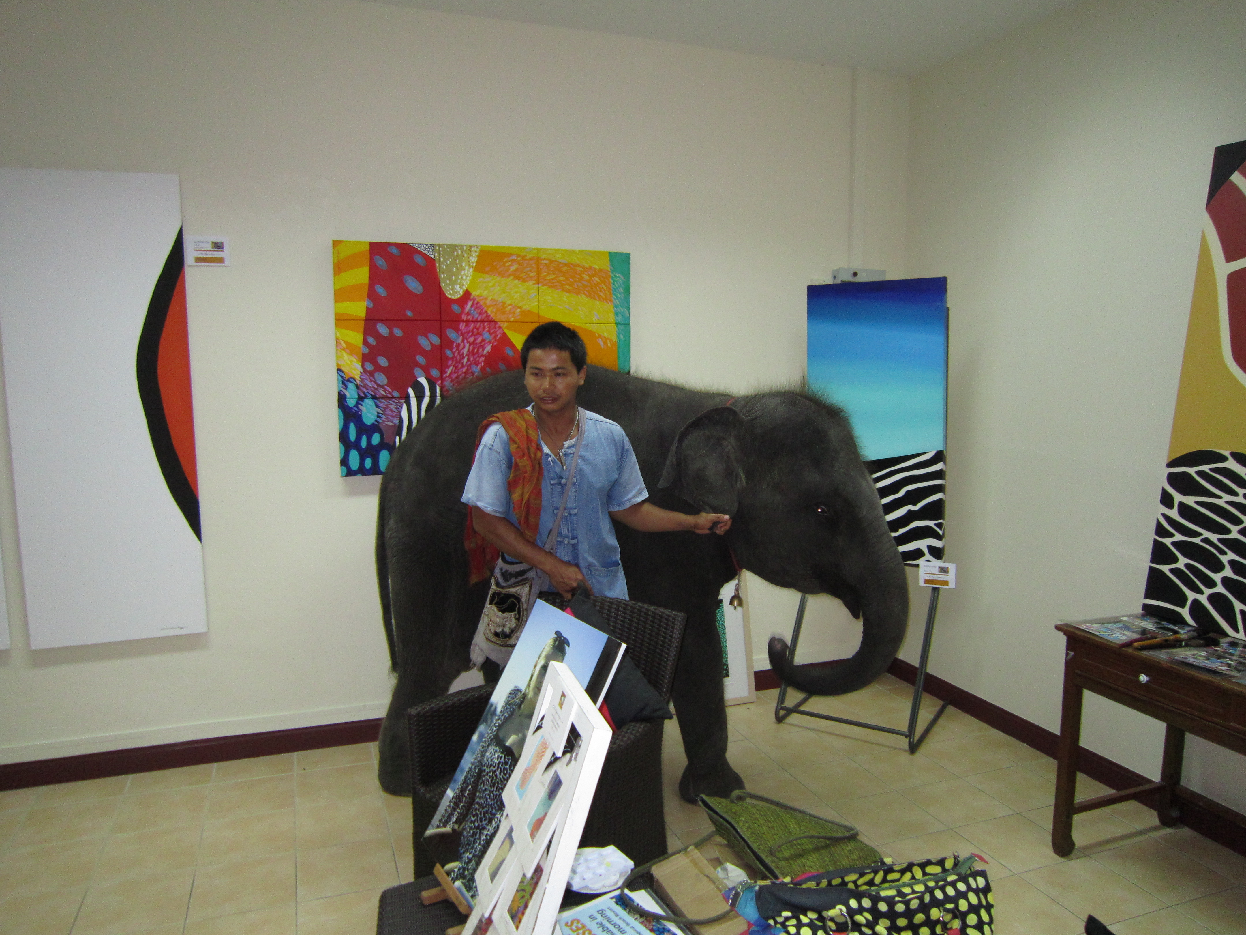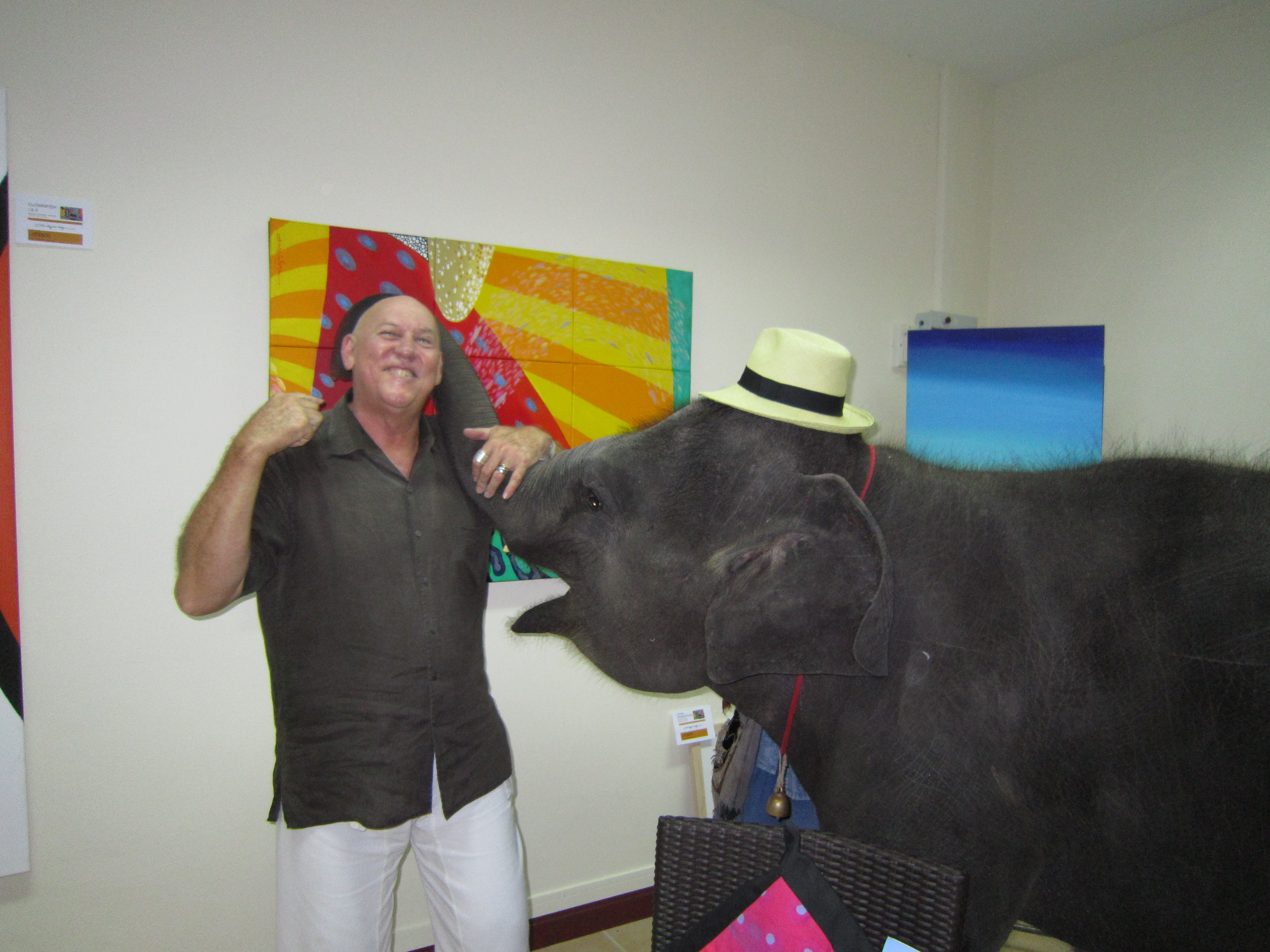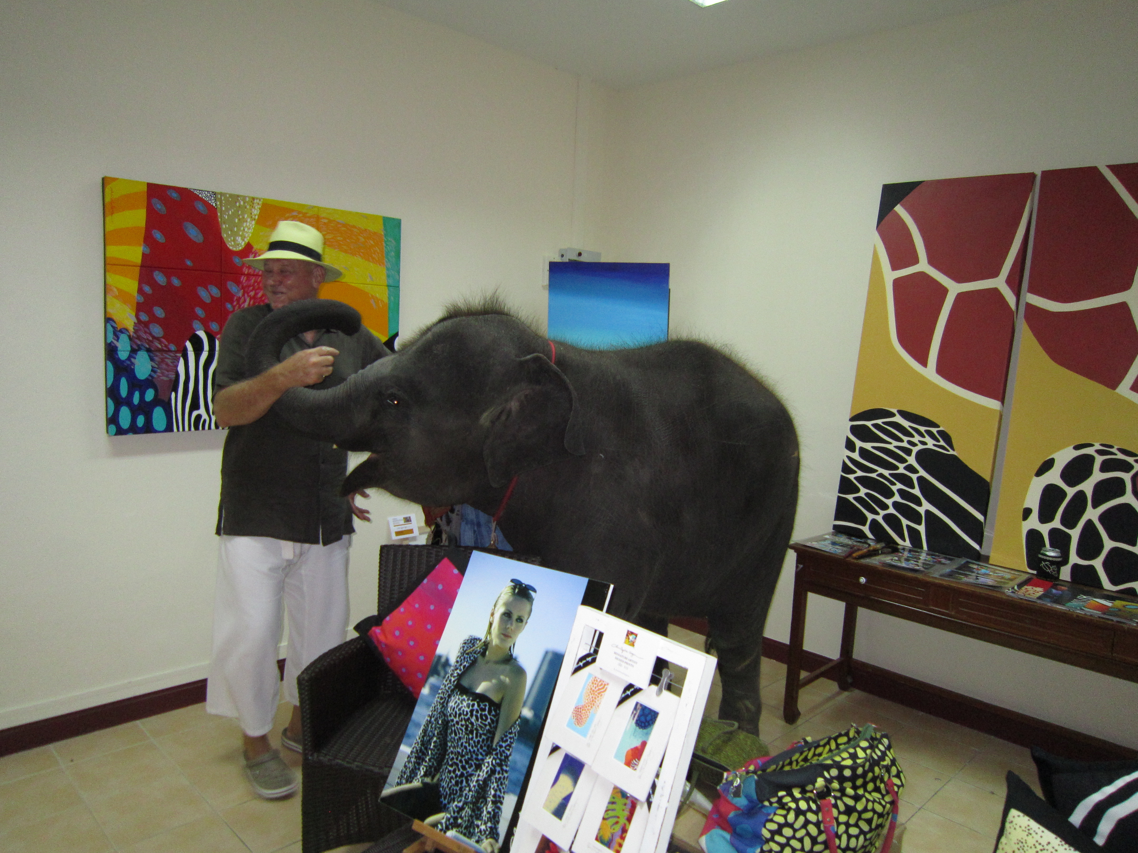 Early last week a baby elephant wondered into my gallery at Laguna Phuket – Canal Village. I do not think that there is anywhere else in the world where something like this would happen. Just a wonderful experience that I wanted to share with you all.