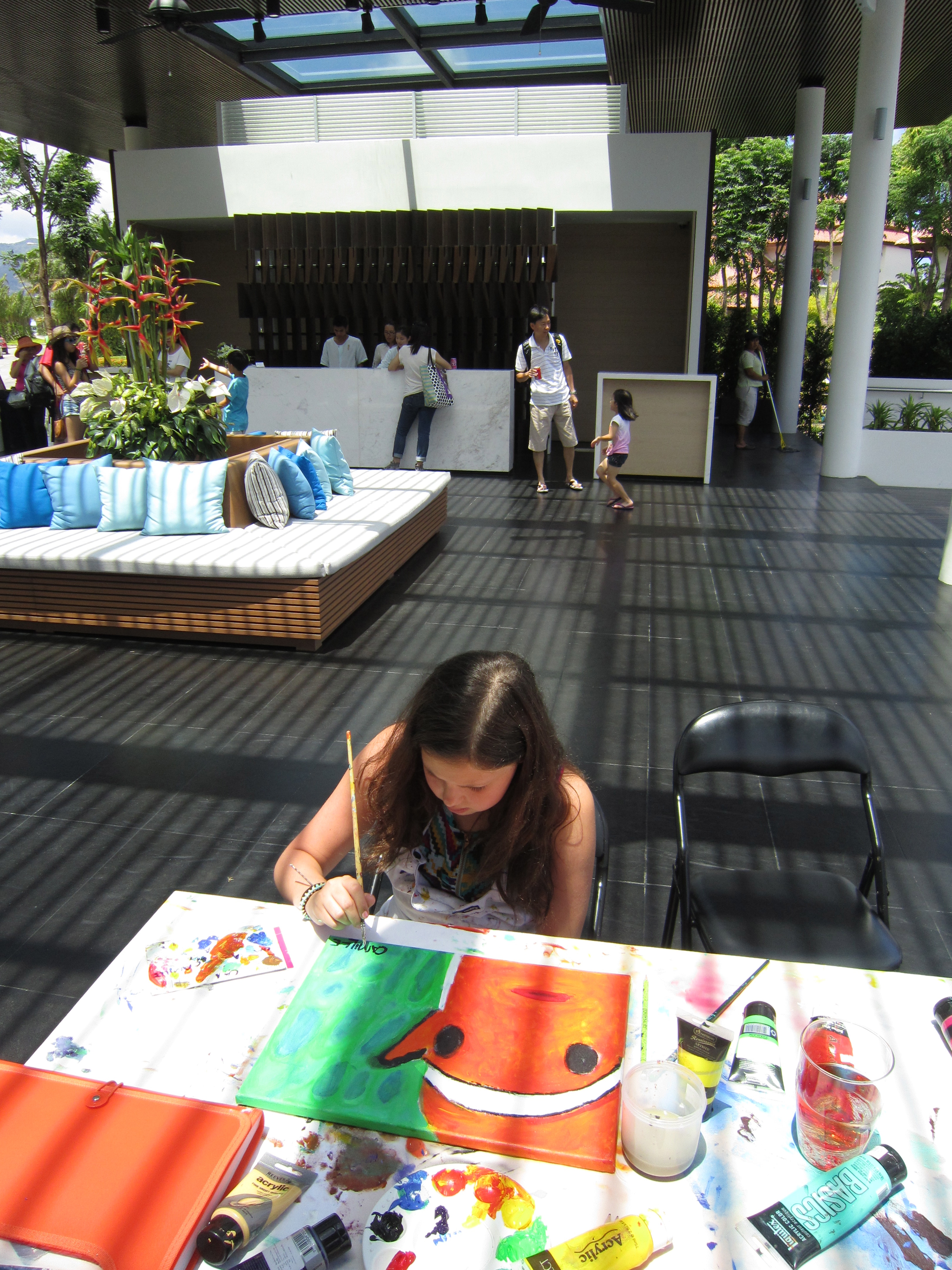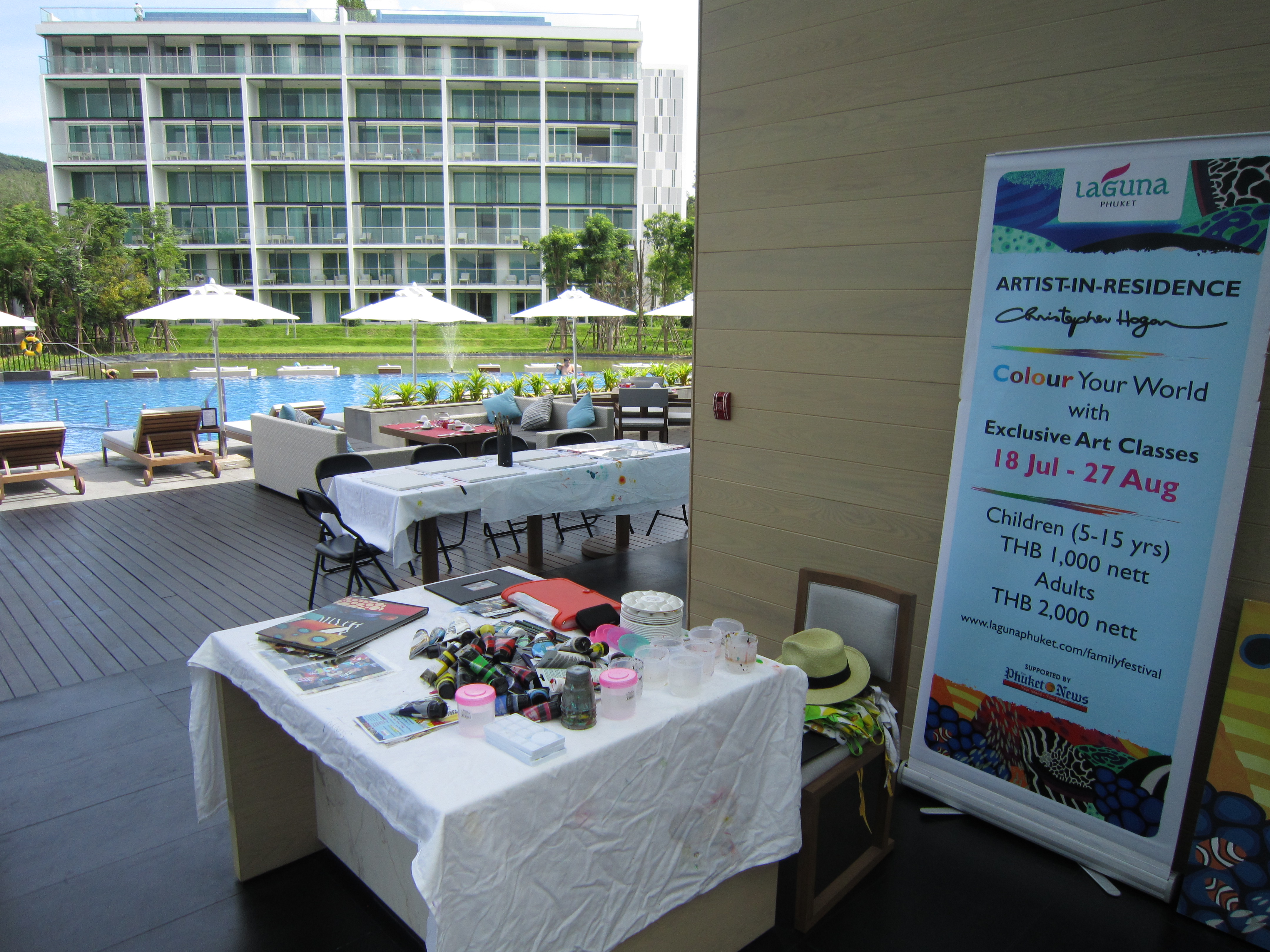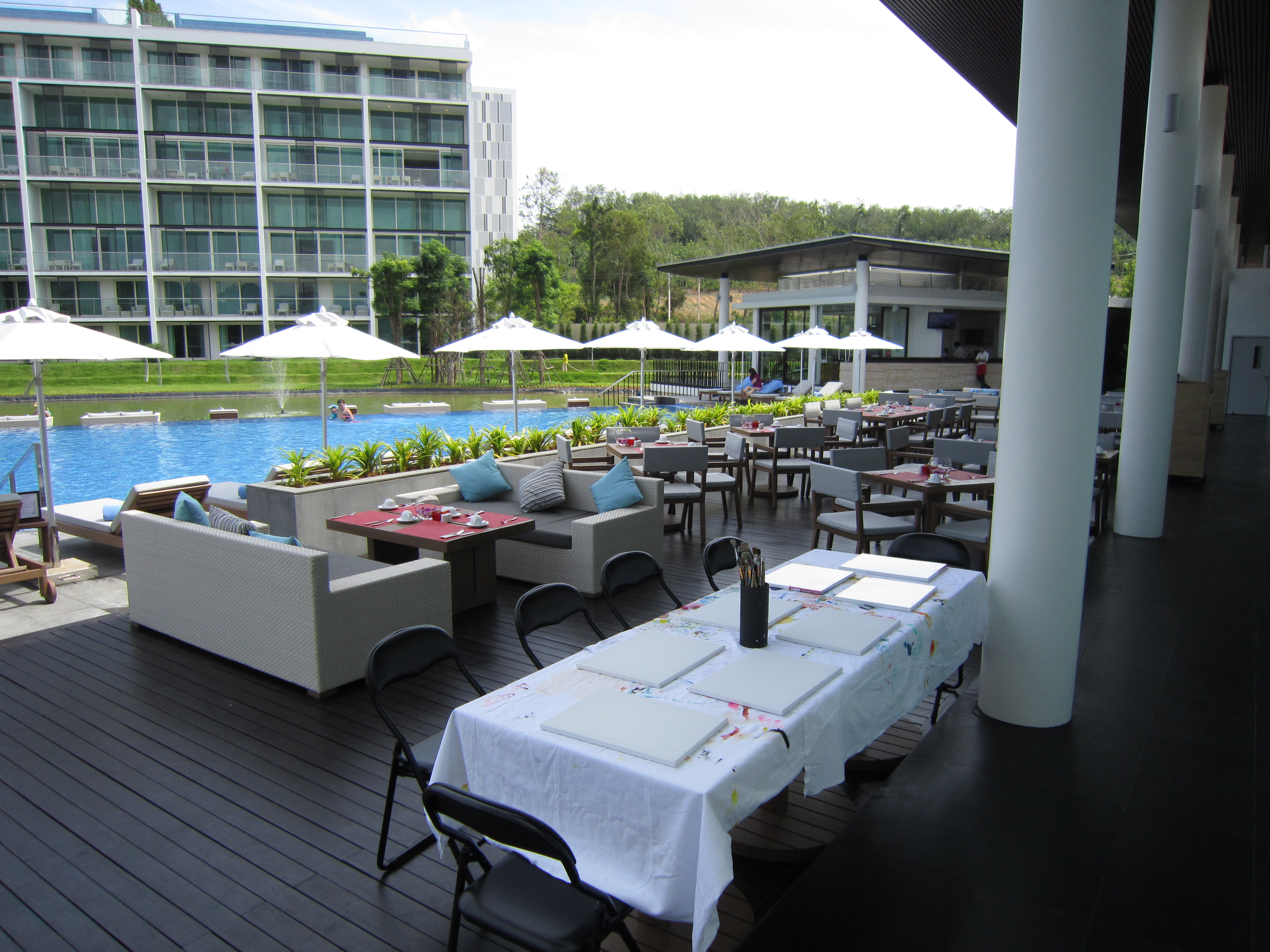 Finished off my week at Outrigger Resort & Villas this morning.This is a photo of my poolside art space and I am very grateful for the staff at Outrigger for all their assistance. It’s a brand new resort with some great outdoor areas, stylish and contemporary…..my art work looked stunning in the reception.
